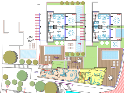 δόμηση 4.445 τ.μ. Οι συνολικά 164 κλίνες του ξενοδοχείου θα κατανεμηθούν σε επιμέρους κτιριακά συγκροτήματα μεμονωμένων διαμερισμάτων έκτασης από 35 έως 75 τ.μ. ανά όροφο, 3 βίλες έκτασης από 75 έως 100 τ.μ. ανά όροφο και 11 πολυτελή δωμάτια (52 τ.μ.). Σε όλα τα συγκροτήματα θα υπάρχουν ιδιωτικές
